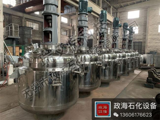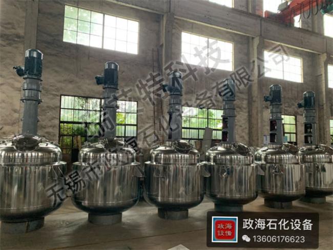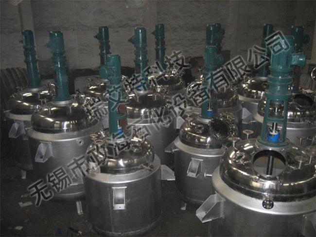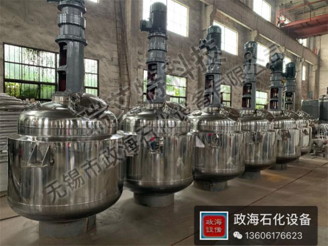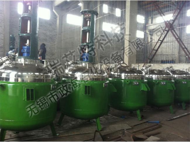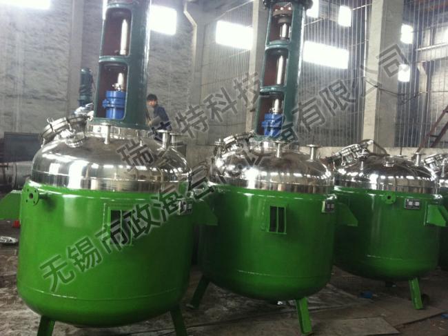 反應釜由鍋體、鍋蓋、攪拌器、電加熱油夾管、支承及傳動裝置、軸封裝置、溢油槽等組成,并配有電加熱棒及測溫、測壓表。